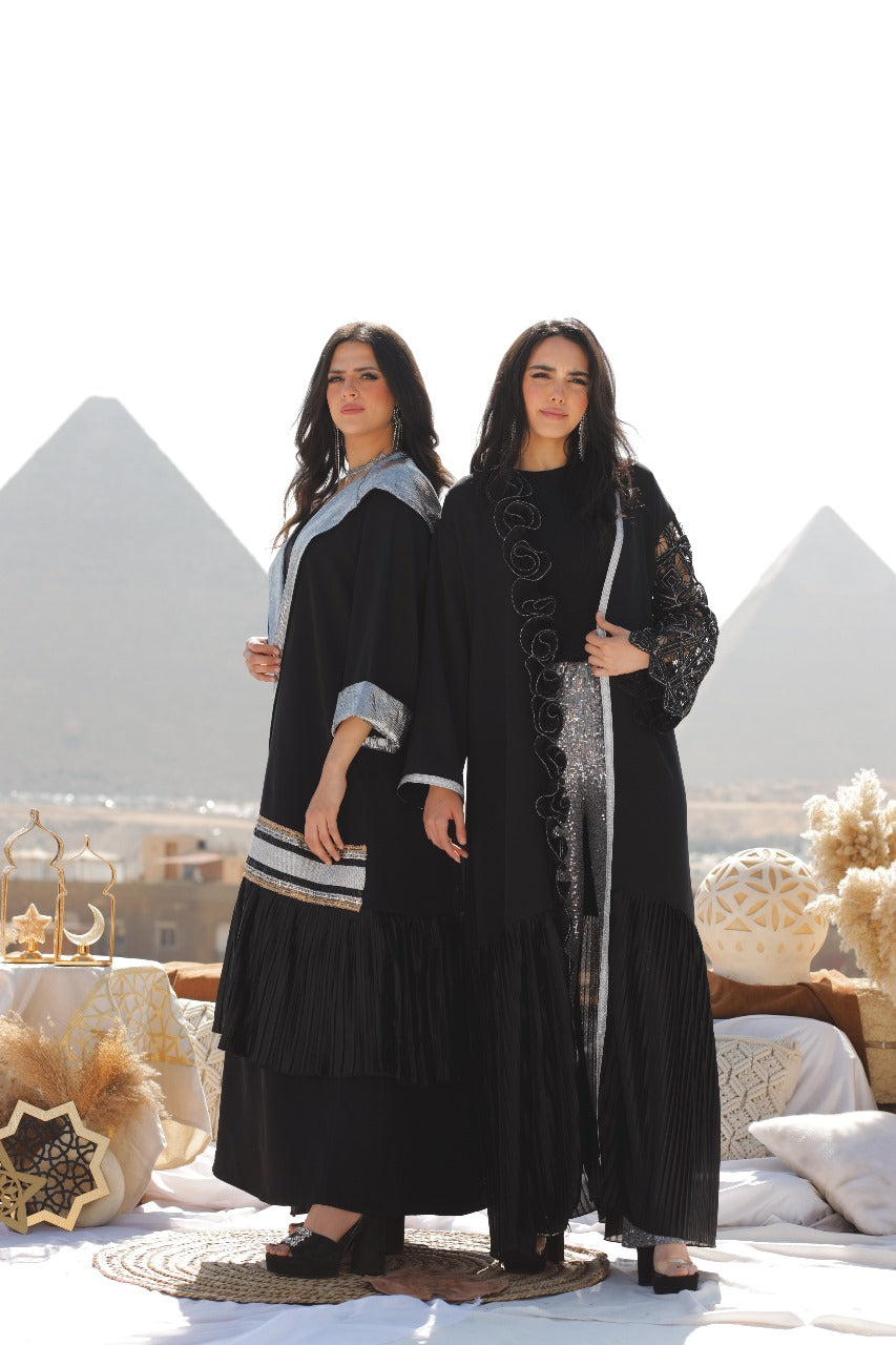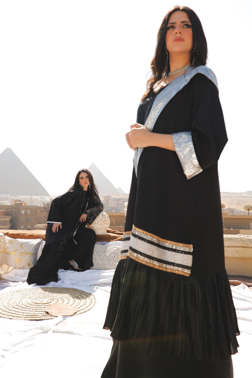 This elegant black abaya features silver embroidery along the edges and sleeves, adding a touch of sophistication. The hooded design enhances its timeless charm, making it perfect for special occasions or stylish everyday wear. Crafted with high-quality fabric, it offers comfort and a graceful flow